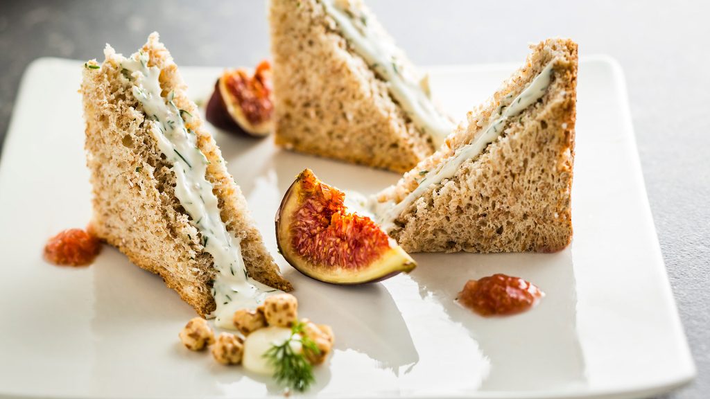 Pour 4 personnes : 160g de Maredsous® Double Crème 4 tranches de pain d’Abbaye de Maredsous® 4 figues Aneth 150g de blé soufflé sucré